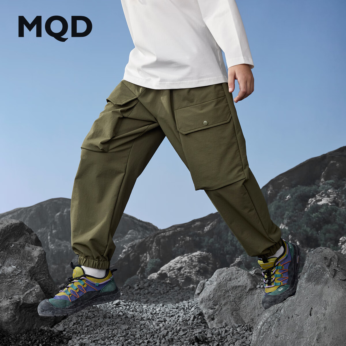 MQD男童户外露营登山工装裤军绿/藏青